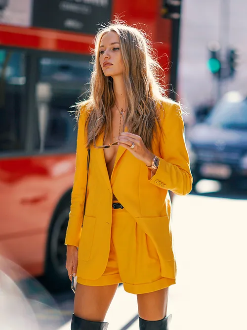 Om korte benen wat langer te laten lijken, kies je voor relatief korte shorts met een hoog uitgesneden taille. Hoog uitgesneden tailles verschuiven het midden van het lichaam optisch naar boven. Als je bovendien veel huid laat zien, is het effect nog groter. Maar pas wel op: te korte shorts kunnen er soms wat ‘tacky’ uitzien.