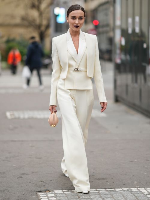 Een wijde geplooide broek en een verfijnde blazer zijn pure elegantie. Business or pleasure? Dit broekpak kan zelfs dienen als bruidsjurk voor de durfals. De volledig witte look kan niet beter uitkomen dan in de vorm van een broekpak.