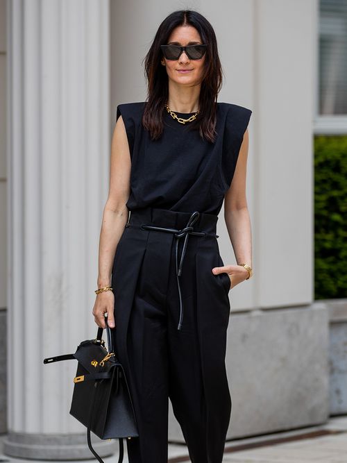 De paperbag broek zien we al sinds de jaren 80. Dit seizoen is de broek ook weer in de mode, net als eigenlijk zoveel tijdloze stukken van vroeger De truc om er up-to-date uit te zien met een broek is hem goed te stylen. Wij houden van een klassieke business look met een top met geaccentueerde schouders en een grove schakelketting – zo kunnen we ook naar kantoor.