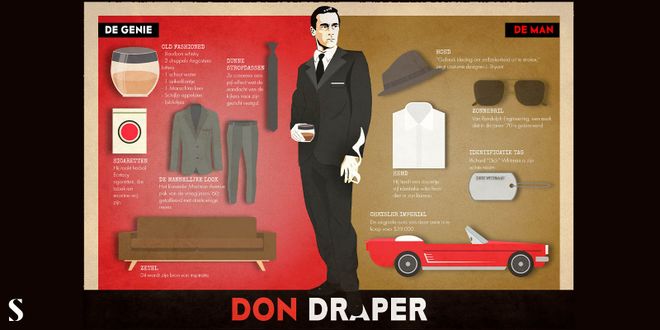 STYLIGHT heeft de essentiële elementen van de vijf belangrijkste Mad Men personages verzameld die de beide kanten van hun persoonlijkheid toont, aangezien al deze personages een dubbele persoonlijkheid hebben die ze kiezen om te tonen wanneer het de context en situatie past.name="grafik">